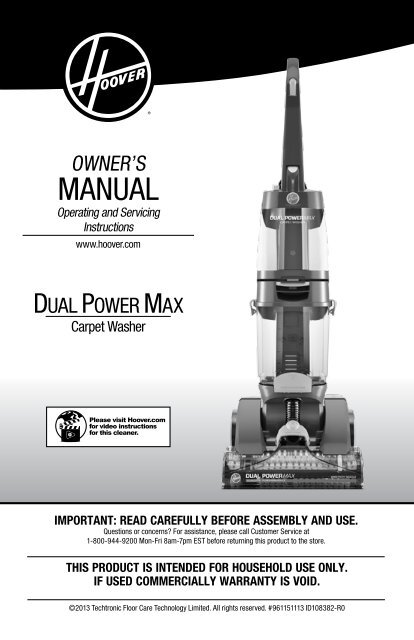 Hoover dual power pro carpet washer instructions.